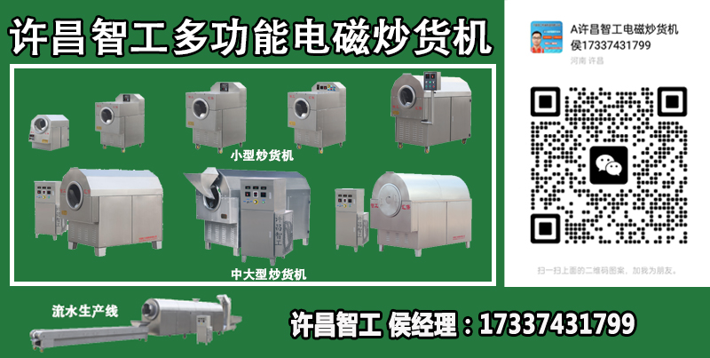 三、操作簡便:電磁炒貨機(jī)是采用智能控制,操作人員根據(jù)需要可自由設(shè)定,因此安全性高(無炒糊和無火災(zāi)現(xiàn)象),炒制品質(zhì)一致,換班換人都不影響炒制品的品質(zhì)。